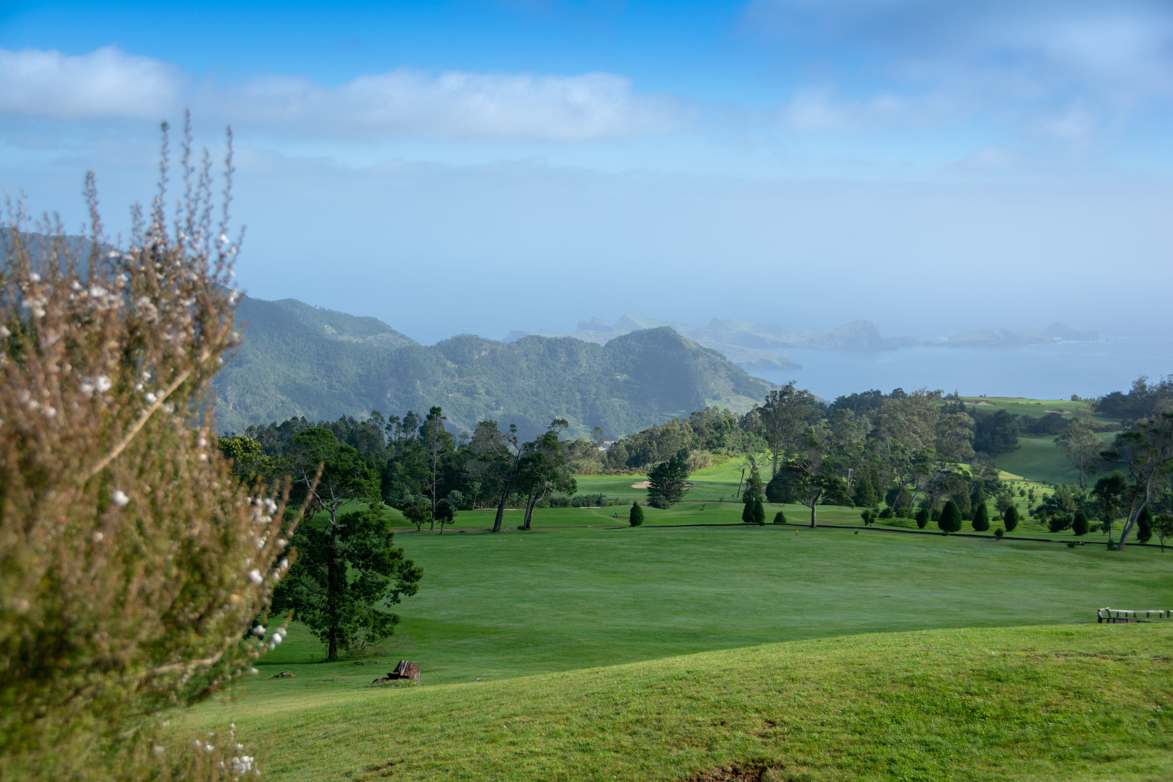Dieser Golfplatz punktet mit uraltem Baumbestand, einer üppigen Vegetation, sowie einer grandiosen Aussicht auf die Machico Bucht. Herausforderungen sind unteranderem einige Doglegs und der Wind, aber auch Teiche findet man auf dem Platz. Man kann hier problemlos ohne ein Cart spielen.