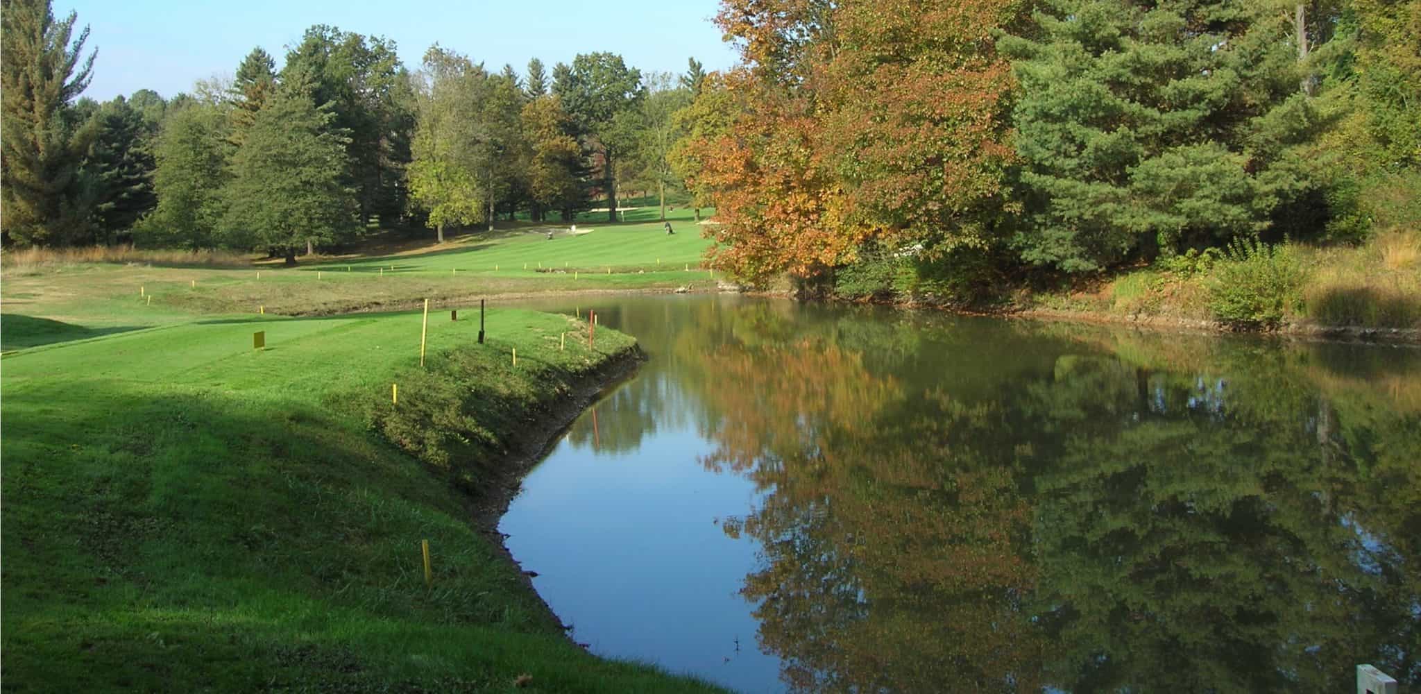 Auf diesem hügeligen und eher anspruchsvollen Platz trifft man auf Wasserhindernisse wie Seen und Bäche, zahlreiche Bäume, schnelle Greens und breite Fairways. HIer ist man gut zu Fuss unterwegs.
